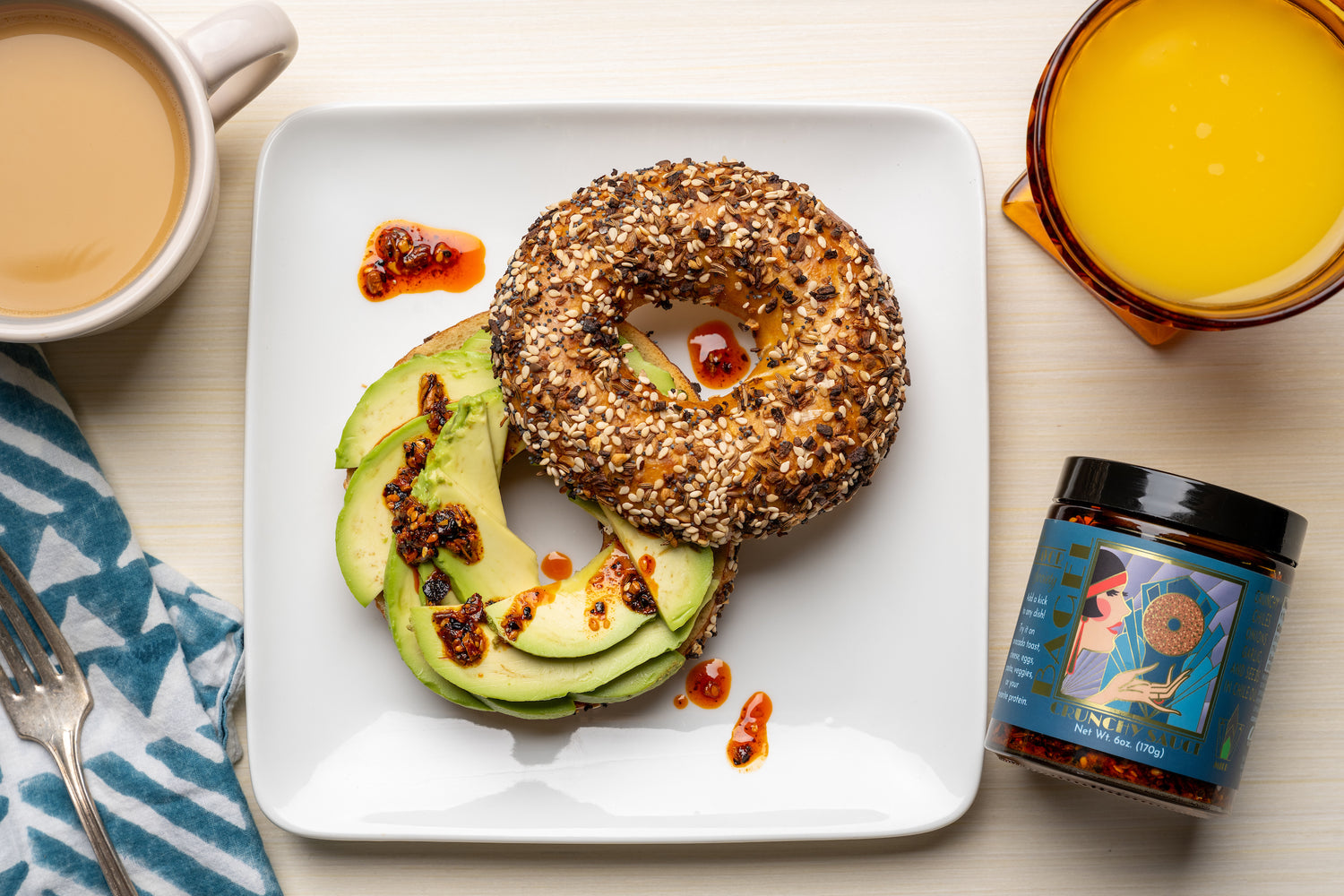 Use our Bagel Chili Crunch on avocado toast, seafood, chicken, raw or cooked vegetables (especially cucumbers), rice, pasta, salads, hummus, cream cheese and of course, bagels!